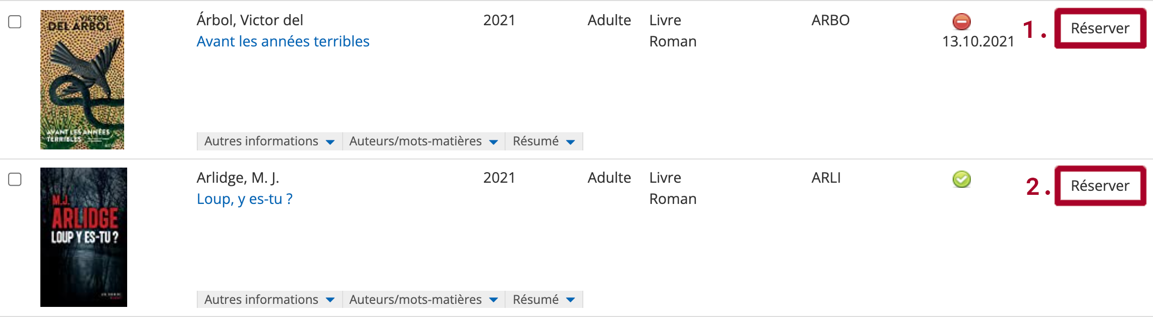 Après avoir effectué vos recherches dans notre catalogue, vous avez la possibilité de réserver vos documents :